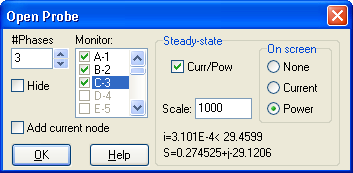 For the Voltage and Current probe you can also choose to output Steady-State values from the LIS-file. For 3-phase circuits, only the A-phase is read.Current probes can output current or power.