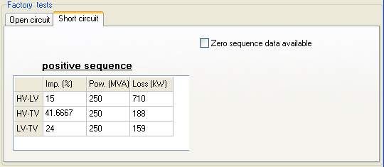 Zero-sequence data can also now be specified for 3-phase transformers.